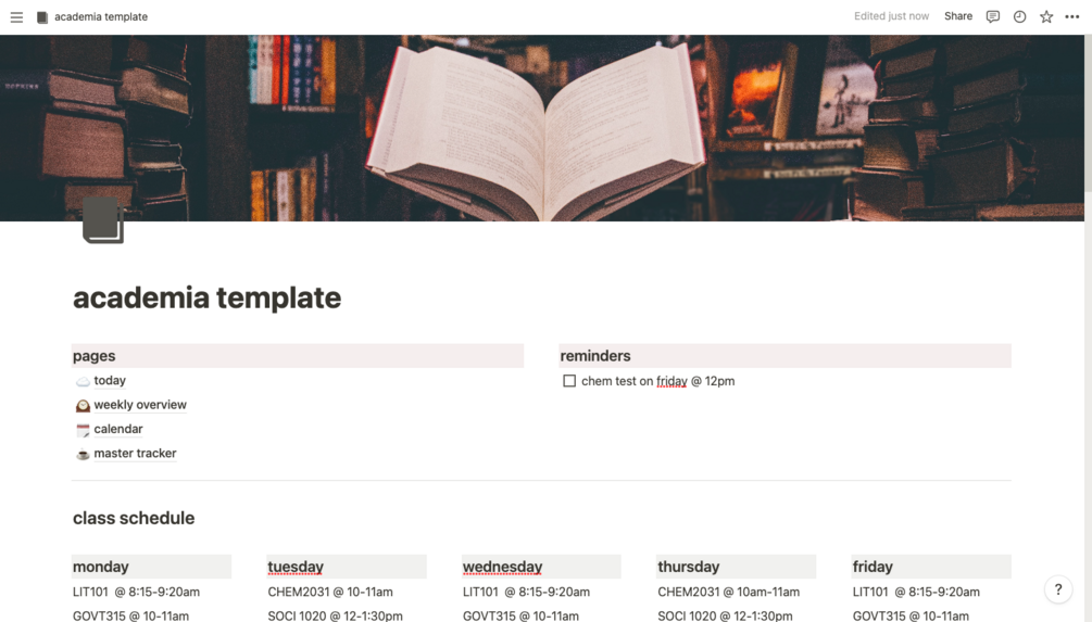 The Academia School Dashboard template is designed for you to be able to keep all your school assignments, events and extracurriculars organized in one single space.