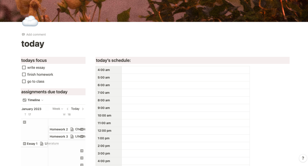 The Academia School Dashboard template is designed for you to be able to keep all your school assignments, events and extracurriculars organized in one single space.