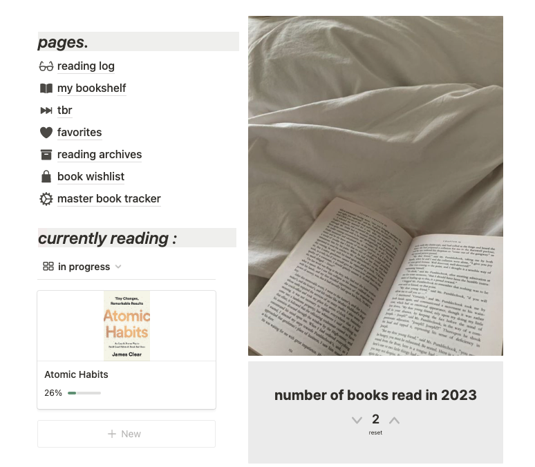 - a widget to track and display the amount of books you've read in 2023.